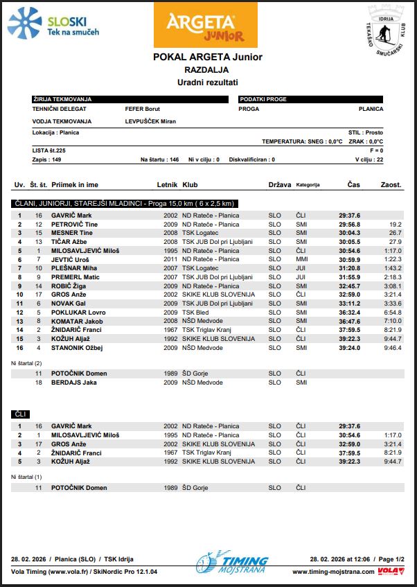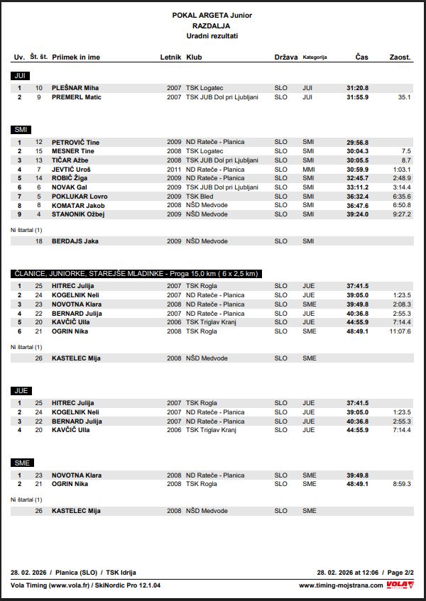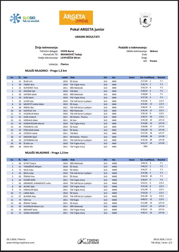 V soboto, 28. februarja 2026 je v Planici potekalo tekmovanje v teku na smučeh za Pokal ARGETA