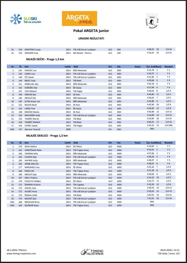 TSK Idrija vzorno organiziral tekmovanje za Pokal ARGETA junior v Planici.