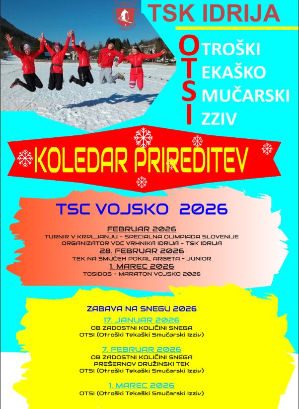 TSK Idrija in Smučarska zveza Slovenije v TSC Vojsko prirejata Državno prvenstvo za leto 2023 v klasični tehniki za mlajše kategorije ter tekmo Pokala ARGETA Junior za odrasle kategorije.