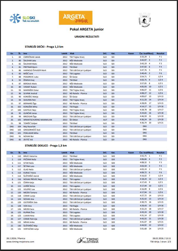 V soboto, 28. februarja 2026 je v Planici potekalo tekmovanje v teku na smučeh za Pokal ARGETA